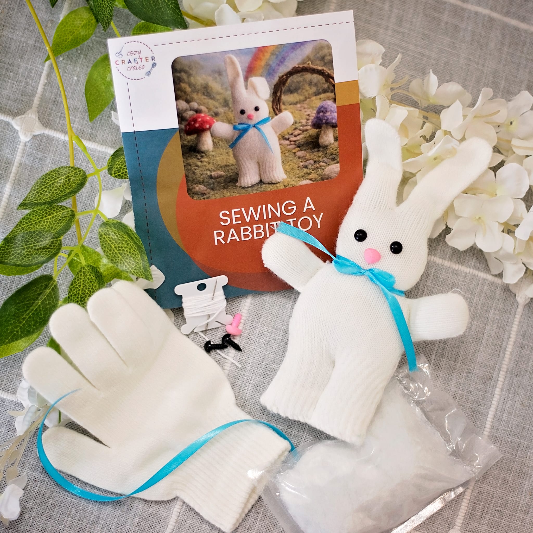 This charming sewing kit guides you through crafting an adorable handmade rabbit toy, stitched together with love.